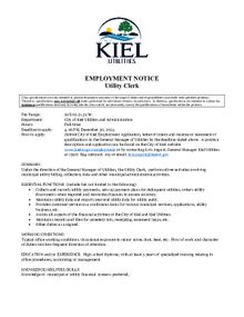 The City of Kiel is currently accepting applications for the below positions.